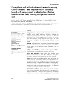 Perceptions and attitudes towards exercise among Chinese elders - the implications of culturally based self-management strategies for effective health-related help seeking and person-centred care.