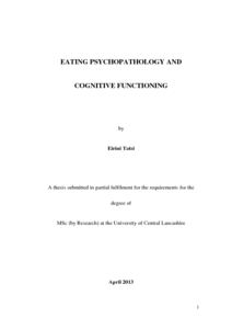 Tatsi, Eirini (2013) Eating psychopathology and cognitive functioning. Masters thesis, University of Central Lancashire.