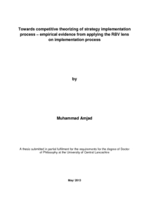 Amjad, Muhammad (2013) Towards competitive theorizing of strategy implementation process – empirical evidence from applying the RBV lens on implementation process. Doctoral thesis, University of Central Lancashire.