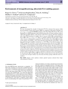 Environments of strong/ultrastrong, ultraviolet Fe II emitting quasars.