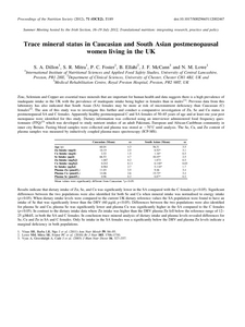 Trace mineral status in Caucasian and South Asian postmenopausal women living in the UK.