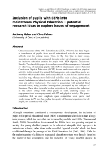 Inclusion of Pupils with SENs into Mainstream Physical Education – Potential Research Ideas to Explore Issues of Engagement.
