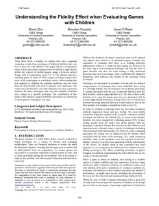 Sim, Gavin, Cassidy, Brendan and Read, Janet C orcid iconORCID: 0000-0002-7138-1643 (2013) Understanding the fidelity effect when evaluating games with children. In: Proceedings of the 12th International Conference on Interaction Design and Children.