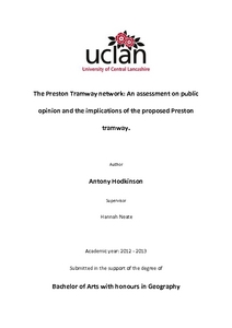 Hodkinson, Antony (2013) The Preston Tramway network: An assessment on public opinion and the implications of the proposed Preston tramway. [Dissertation]