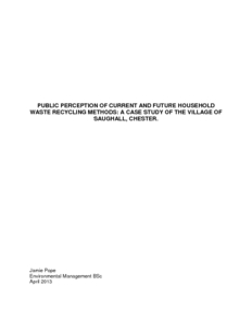 Pope, Jamie Ben (2013) PUBLIC PERCEPTION OF CURRENT AND FUTURE HOUSEHOLD WASTE RECYCLING METHODS: A CASE STUDY OF THE VILLAGE OF SAUGHALL, CHESTER. [Dissertation]