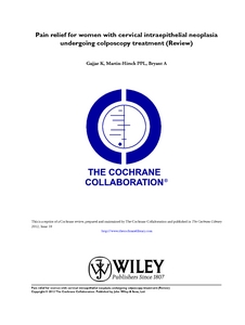 Gajjar, Ketan, Martin-Hirsch, Pierre PL, Bryant, Andrew and Gajjar, Ketan (2012) Pain relief for women with cervical intraepithelial neoplasia undergoing colposcopy treatment. The Cochrane Library . pp. 1-71. ISSN 1465-1858