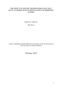Jaiswal, Seema Rammurat (2010) The effect of specific phospholipids that may have a possible role in propagating or inhibiting glioma. [Dissertation]