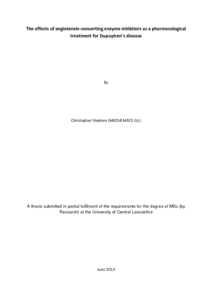 Stephen, Christopher (2013) The effects of angiotensin-converting enzyme inhibitors as a pharmacological treatment for Dupuytren’s disease. Masters thesis, University of Central Lancashire.