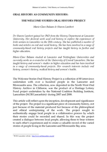 ORAL HISTORY AS COMMUNITY HISTORY:THE WELCOME STORIES ORAL HISTORY PROJECT.