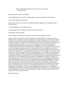 Heaton, Vivienne, Moffatt, Colin and Simmons, Tal Linda Ileen (2014) Quantifying the Temperature of Maggot Masses and its Relationship to Decomposition. Journal of Forensic Sciences, 59 (3). pp. 676-682. ISSN 0022-1198