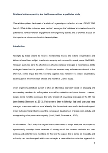 This article explores the impact of a relational organising model within a local UNISON NHS branch. While initial outcomes were modest, we argue that relational