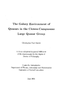 Haines, C.P (2001) The Galaxy Environment of Quasars in the Clowes-Campusano Large Quasar Group. Post-Doctoral thesis, University of Central Lancashire.