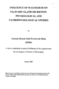 Mata, Antonio (2003) Influence of magnesium on salivary gland secretion: physiological and pathophysiological studies. Doctoral thesis, University of Central Lancashire.