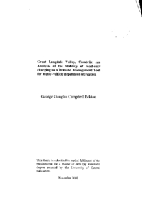 Eckton, George (2002) Great Langdale Valley, Cumbria: An Analysis of the viability of road-user charging as a Demand Management Tool for motor-vehicle dependent recreation. Masters thesis, University of Central Lancashire.
