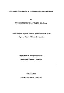 Manolopoulus, Panagiotis (2002) The role of Calcineurin in skeletal muscle differentiation. Masters thesis, University of Central Lancashire.