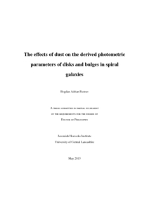 Pastrav, Bogdan Adrian (2013) The effects of dust on the derived photometric parameters of disks and bulges in spiral galaxies. Post-Doctoral thesis, University of Central Lancashire.