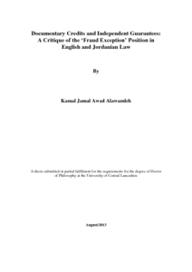Alawamleh, Kamal Jamal Awad (2013) Documentary Credits and Independent Guarantees: A Critique of the ‘Fraud Exception’ Position in English and Jordanian Law. Doctoral thesis, University of Central Lancashire.