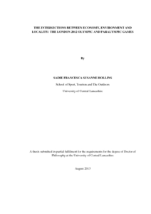 Hollins, Sadie Francesca Susanne (2013) The Interscetions between economy, environment and loacality: the London 2012 Olympic and paralympic games. Doctoral thesis, University of Central Lancashire.