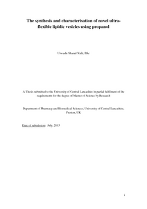 Naik, Urwashi Sharad (2013) The synthesis and characterisation of novel ultra-flexible lipidic vesicles using propanol. Masters thesis, University of Central Lancashire.