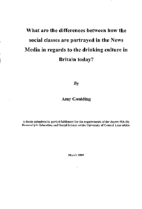 Goulding, Amy (2009) What are the differences between how the social classes are portrayed in the News Media in regards to the drinking culture in Britain today? Masters thesis, University of Central Lancashire.