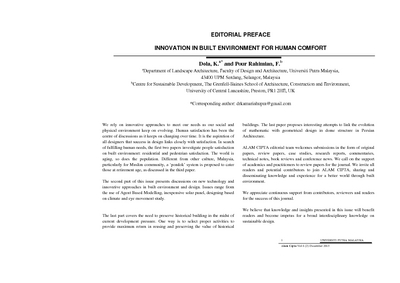 EDITORIAL PREFACE: INNOVATION IN BUILT ENVIRONMENT FOR HUMAN COMFORT.