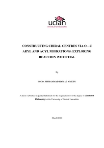 Ameen, Dana Muhammad Hamed (2014) CONSTRUCTING CHIRAL CENTRES VIA O→C ARYL AND ACYL MIGRATIONS: EXPLORING REACTION POTENTIAL. Doctoral thesis, University of Central Lancashire.