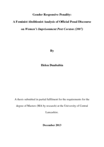 Dunbabin, Helen Susan (2013) Gender responsive penality: A feminist abolitionist analysis of official penal discourse post Corston report (2007). Masters thesis, University of Central Lancashire.