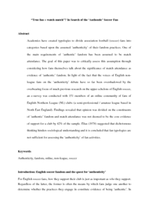 Gibbons, T and Nuttall, D (2014) “True fan = watch match”? In Search of the ‘Authentic’ Soccer Fan. Soccer in Society .