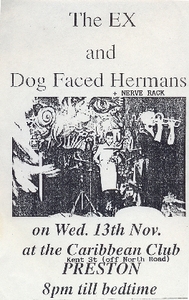 PDF (The Ex and Dog Faced Hermans - flyer for performance on the 13th November 1991 at the Carribean Club, Preston)